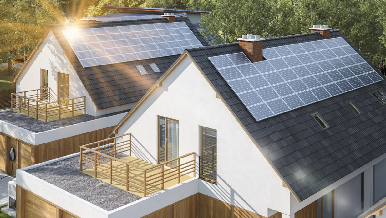 Bildquelle: Lizenzfreies Bild eines Hauses mit Photovoltaik-Modulen und Gebäudedämmung (Dow Inc./Building Insulation)